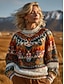 בגדי ריקוד נשים סוודר חופשה וינטאג' אופנתי גראפי גיאומטרי צווארון עגול קצר סרוג שרוול ארוך חולצות רגילות לִסְרוֹג עבודה יומי כתום סתיו חורף