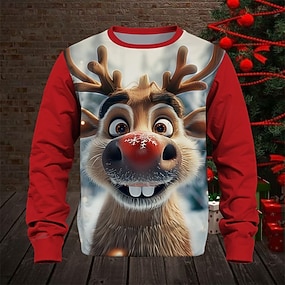 חג המולד בנים תלת מימד צבי טרנינג שרוול ארוך אביב סתיו אופנתי בסיסי ילדים 4-12 שנים צווארון עגול קצר בָּחוּץ קזו'אל יומי רגיל