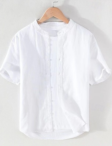 בגדי ריקוד גברים חולצה חולצת פשתן חולצת צווארון להקה חולצה פופ-אובר חולצת קיץ ביגוד חוף צבע אחיד חופשה רחוב לבן כחול נייבי כחול סקיי שרוולים קצרים צווארון מנדרינה קיץ אביב ביגוד