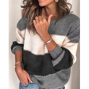 בגדי ריקוד נשים סוודר יום יומי רך קולור בלוק מצולע צווארון עגול קצר סרוג שרוול ארוך חולצות רגילות לִסְרוֹג בָּחוּץ יומי חגים שחור פול סתיו