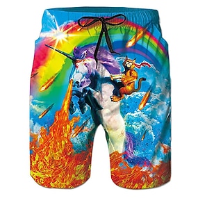 בגדי ריקוד גברים גראפי אנימציה חד-קרן מכנסי שחייה מכנסי גלישה מכנסי שורט בגדי ים מותן בינוני סגנון רחוב הוואי בוהו קזו'אל יומי חגים שרוך אלסטית מותניים הדפסת תלת מימד מְעַצֵב ביגוד