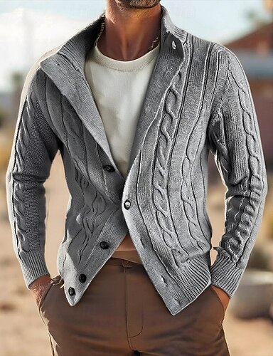 בגדי ריקוד גברים סוודר קרדיגן קרדיגן סוודר קצוץ כבל לִסְרוֹג רגיל כפתורים צבע אחיד עומד אופנתי קלסי חופשה לבוש יומיומי ביגוד סתיו חורף שחור חאקי M L XL