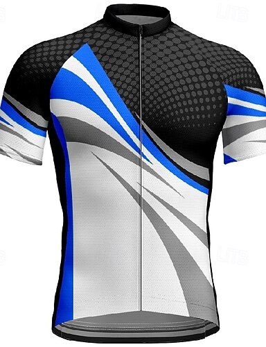 בגדי ריקוד גברים חולצת ג'רסי לרכיבה גיאומטרי שרוולים קצרים אופנייים טי טי ג'רזי עם 3 כיסים אחוריים רכיבת הרים ייבוש מהיר עיצוב אנטומי פתיליות נושם ספורט כחול ביגוד