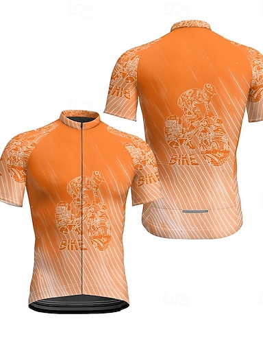 בגדי ריקוד גברים חולצת ג'רסי לרכיבה אנימציה מכתב ומספר שרוולים קצרים אופנייים טי טי ג'רזי עם 3 כיסים אחוריים רכיבת הרים ייבוש מהיר עיצוב אנטומי פתיליות נושם ספורט שחור לבן כתום ביגוד