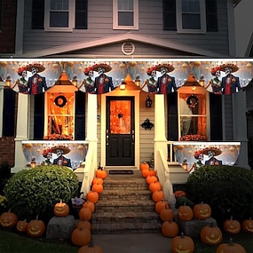 ליל כל הקדושים מאוורר דגל גבתון חיצוני דגל עבור חיצוני ליל כל הקדושים חצר גדר תלייה מפחיד דלעת באנר דגל שולחן עיצוב סתיו חדר עיצוב אסתטי ליל כל הקדושים מסיבת יום הולדת דקור