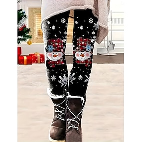 בגדי ריקוד נשים מִכְנָסַיִים חותלות טייץ נעים חופשה וינטאג' סגנון רחוב באורך מלא טבעיPantsחג המולד גראפי איש שלג פתית שלג אלסטית מותניים דפוס נוח חוץ סטרצ'י (נמתח) בָּחוּץ חופשה רחוב שחור סתיו חורף