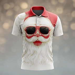 חג המולד בגדי ריקוד גברים סנטה קלאוס פּוֹלוֹ שרוולים קצרים חולצות פולו דש יום יומי חגים תלבושת פסטיבל הדפסת תלת מימד כפתורים קיץ אדום 1 אדום 3 אדום 2