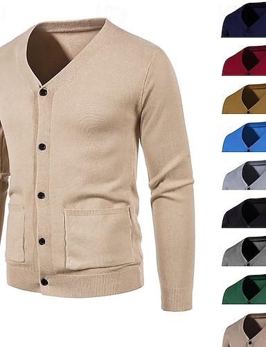 בגדי ריקוד גברים סוודר סוודר קרדיגן מצולע לִסְרוֹג חולצות רגילות סרוג אחיד צווארון V חופשה אופנתי קזו'אל לבוש יומיומי ביגוד אביב קיץ & אביב שחור בורגנדי M L XL