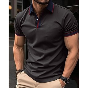 בגדי ריקוד גברים חולצת גולף חולצות פולו גולף עבודה קזו'אל דש שרוולים קצרים בסיסי מודרני קולור בלוק טלאים כפתורים קיץ אביב רגיל משמש שחור לבן אדום פול כתום חולצת גולף