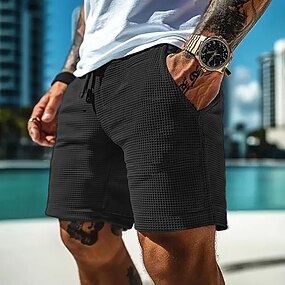 בגדי ריקוד גברים שורט וופל שורטים מכנס קיץ קצר מכנסיים קצרים מזדמנים כיס שרוך אלסטית מותניים אחיד קומפורט נושם קצר בָּחוּץ חופשה ספורט יום יומי שחור לבן