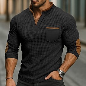 בגדי ריקוד גברים טי וופל חולצת הנלי וופל שרוול ארוך עומד קיץ & אביב כל העונות צבע אחיד אופנתי בסיסי יום יומי כיסים שתי חתיכות מזויפות רחוב קזו'אל ספורט שחור כחול נייבי ירוק צבאי חולצה עליונה לגברים