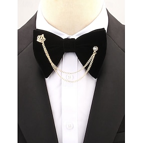 פפיון קטיפה לגברים עם פרטי כתר ושרשרת - אביזר אלגנטי לאירועים רשמיים, חתונות וטוקסידו
