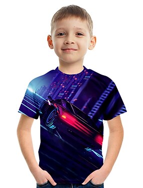בנים תלת מימד גראפי מכונית הדפסת תלת מימד חולצה קצרה טישירט שרוולים קצרים הדפסת תלת מימד קיץ פעיל אופנתי מגניב ילדים 3-12 שנים