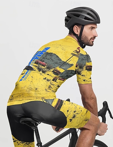 בגדי ריקוד גברים חולצת ג'רסי לרכיבה שיפוע מכתב ומספר שרוולים קצרים אופנייים טי טי ג'רזי עם 3 כיסים אחוריים רכיבת הרים ייבוש מהיר עיצוב אנטומי פתיליות נושם ספורט צהוב כחול פוקסיה ביגוד