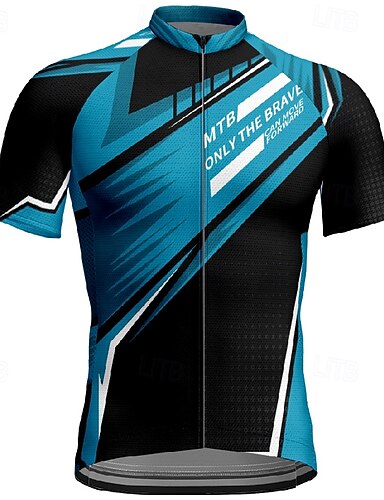 בגדי ריקוד גברים חולצת ג'רסי לרכיבה גיאומטרי שרוולים קצרים אופנייים טי טי ג'רזי עם 3 כיסים אחוריים רכיבת הרים ייבוש מהיר עיצוב אנטומי פתיליות נושם ספורט כחול ביגוד