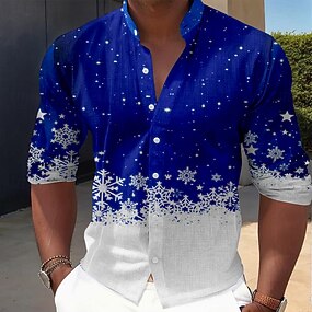 חג המולד גברים סצנת חג המולד חולצות מודפסות פתית שלג קז'ואל שמלה קז'ואל כפתור למעלה שרוולים ארוכים מסיבה ערב יום יום חופשה קיץ אביב סתיו חולצות צווארון הדפס תלת מימד דק כחול סאטן