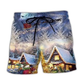 בגדי ריקוד גברים מכנסי שחייה מכנסי שורט בגדי ים מכנסי גלישה שרוך עם בטנת רשת אלסטית מותניים בית ייבוש מהיר קצר חג מולד חגים חוף הוואי יום יומי פול מיקרו-אלסטי