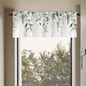 1 חתיכה של וילון קצר למטבח עם עלים ירוקים בצבע 54 אינץ' * 18 אינץ' - וילון פה מוט 100% פוליאסטר שטוף במכונה עם לולאות, עיצוב עלים שקוף, מתאים לחדר אמבטיה וחדר שינה בסלון