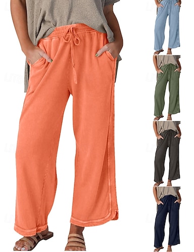 בגדי ריקוד נשים רגל רחבה צ'ינו מכנסיים רחבים וינטאג' בסיסי יום יומי עד לקרסול מותניים גבוהים צבע אחיד אחיד שרוך טלאים מדפיס נושם קשיח רשמי בָּחוּץ חופשה ורוד בהיר כחול ביצת רובין לבן שמנת חאקי