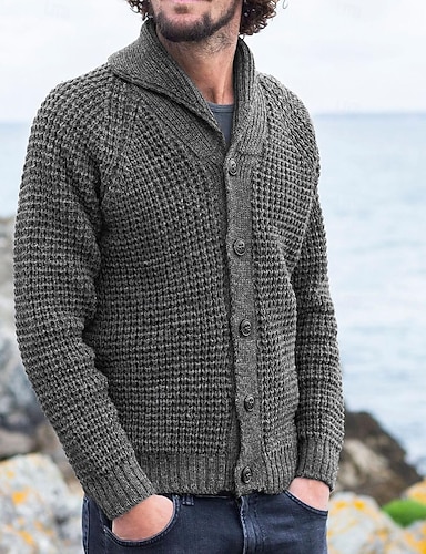 בגדי ריקוד גברים סוודר קרדיגן סוודר סרוג מצולע לִסְרוֹג רגיל כפתור למעלה צבע אחיד צווארון צעיף (שאל) אופנתי קלסי לבוש יומיומי פגישה (דייט) ביגוד סתיו חורף אפור M L XL