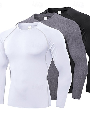 בגדי ריקוד גברים חולצת דחיסה חולצה אתלטית חולצת כושר שרוול ארוך טי טי קזו'אל בגדי ספורט ומנוחה סתיו אחיד ייבוש מהיר רך נושם כושר אמון הליכה ג'וגינג בגדי ספורט לבוש אקטיבי שחור לבן ירוק בהיר