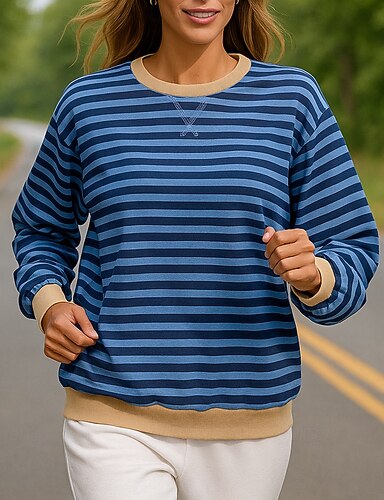 בגדי ריקוד נשים סווטשירט עם סווטשירט חולצות קז'ואל שרוול ארוך צמרות בגדי ספורט ומנוחה סתיו פסים כותנה הגנה מפני השמש עמיד חוץ ריצה בגדי ספורט לבוש אקטיבי פול