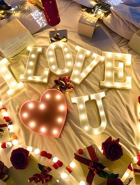 שלט תאורת אותיות לד, 26 אותיות מוארות באלפבית, מנורות מרקיזה דקורטיביות המופעלות על סוללה לחתונות, ימי הולדת, מסיבות, בר ביתי ועיצוב חג המולד
