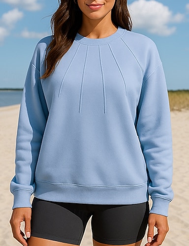 בגדי ריקוד נשים סווטשירט עם סווטשירט חולצות קז'ואל שרוול ארוך צמרות קזו'אל בגדי ספורט ומנוחה סתיו אחיד נושם חוץ נסיעות ספורטיבי בגדי ספורט לבוש אקטיבי שחור לבן פול