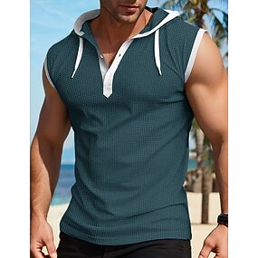 בגדי ריקוד גברים חולצת וופל עליונית טנק גופיה חולצה ללא שרוולים ללא שרוולים עם קפוצ'ון קיץ אחיד אופנתי מעצב שְׁרִיר בָּחוּץ ליציאה חדר כושר שחור לבן אודם חולצה עליונה לגברים