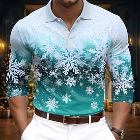 חג המולד בגדי ריקוד גברים פתית שלג חולצות פולו חולצות פולו גולף שרוול ארוך חולצות פולו קולר יום יומי חופשה מסיבה לבוש ליום הדפסת תלת מימד כפתורים אביב סתיו חורף שחור צהוב אודם
