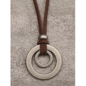 שרשרת עור מתכווננת לגברים עם תליון עיגול כפול - תכשיטי וינטג' קז'ואל ללבוש יומיומי ולסגנון חוץ