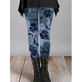 בגדי ריקוד נשים מִכְנָסַיִים חותלות טייץ נעים חופשה וינטאג' סגנון רחוב באורך מלא טבעי פרחוני גראפי פרח אלסטית מותניים דפוס נוח חוץ גמישות גבוהה בָּחוּץ לבוש רחוב חופשה כחול כהה סתיו חורף רגיל