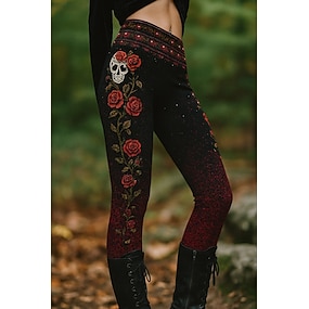 מכנסי легging לנשים חופשה בסגנון אתני וינטאג' באורך מלא מותן גבוהה גרפית גולגולת הדפס תלת מימדי ייבוש מהיר נושם רך אלסטי חיצוני קז'ואל ורוד אדום כחול סגול חורף רזה