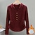 בגדי ריקוד נשים חולצת קטיפה חולצות קז'ואל כפתורים שרוול ארוך צמרות בגדי ספורט ומנוחה צווארון V אחיד חם חדר כושר חוץ ריצה בגדי ספורט לבוש אקטיבי שחור לבן אודם