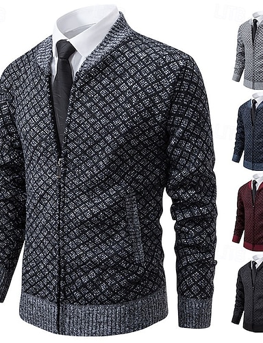 בגדי ריקוד גברים סוודר סוודר שמלה סוודר קרדיגן סוודר רוכסן סוודר סרוג מצולע לִסְרוֹג חולצות רגילות סרוג מצולע אחיד עומד אופנתי שאלים קזו'אל לבוש יומיומי ביגוד סתיו חורף שחור אודם M L XL