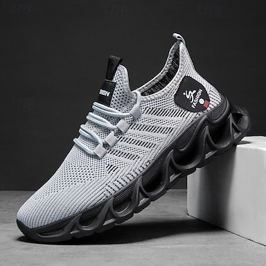 סניקרס סריג לגברים לנשימה - נעלי ריצה קלות משקל עם סוליה מרופדת להליכה וללבוש יומיומי