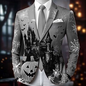 חג ליל כל הקדושים בגדי ריקוד גברים מעיל בלייזר בָּחוּץ רחוב פֶסטִיבָל יום יומי קז'ואל מודרני כל העונות 100% פוליאסטר שלד הדפסת תלת מימד כפתורים נוח חזה יחיד בְּלֵיזֶר חום אפור