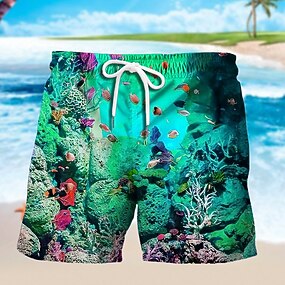 בגדי ריקוד גברים גראפי אוקיינוס דגים מכנסי שחייה מכנסי שורט בגדי ים מכנסי גלישה מותן בינוני הוואי מעצב בוהו חגים חוף שרוך עם בטנת רשת אלסטית מותניים מְעַצֵב ביגוד