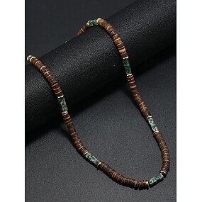 שרשרת חרוזים לגברים מעץ טבעי עם דגשים בטורקיז, סגנון גולש בוהו, תכשיטים מתכווננים לחוף, לפסטיבלים ותלבושות קז'ואל