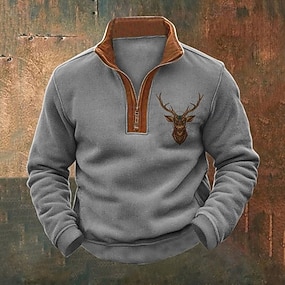 בגדי ריקוד גברים טרנינג סווטשירט עם רבע רוכסן שחור אפור חצי רוכסן קולור בלוק אייל חצי זיפ דפוס ספורט וחוץ יומי חגים וינטאג' סגנון רחוב יום יומי סתיו חורף ביגוד קפוצ'ונים חולצות טריקו שרוול ארוך