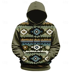 בגדי ריקוד גברים הדפסת 3D קפוצ'ונים טרנינג אתני קאובוי שרוול ארוך צווארון עגול קצר חגים לבוש רחוב לבן שרוך סתיו חורף מְעַצֵב