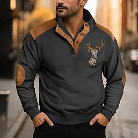 בגדי ריקוד גברים טרנינג סווטשירט עם רבע רוכסן שחור חום אפור חצי רוכסן קולור בלוק אייל חצי זיפ דפוס ספורט וחוץ יומי חגים פוליאסטר וינטאג' סגנון רחוב יום יומי סתיו חורף ביגוד קפוצ'ונים חולצות טריקו
