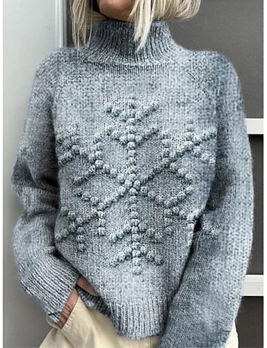 בגדי ריקוד נשים סוודר חופשה יומי פתיתי שלג מצולע גולף סרוג דפוס שרוול ארוך חולצות רגילות לִסְרוֹג בָּחוּץ יומי חגים פול סתיו חורף