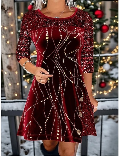 שמלה שחורה לנשים שמלת פאייטים שמלת מסיבה נצנצים נצנצים צווארון צוואר חצי שרוול שמלת מיני שמלת חתונה אורחת כסף ורד זהב אביב סתיו