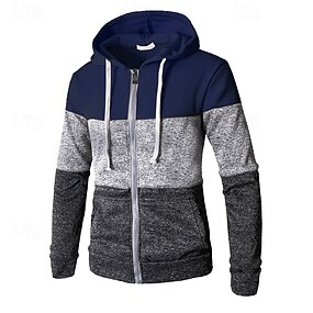 בגדי ריקוד גברים קפוצ'ון קפוצ'ון רוכסן מלא יין אדום שחור כחול ים אפור בהיר אפור כהה עם קפוצ'ון אחיד טלאים בלוק צבע ספורט וחוץ קזו'אל יומי סגנון רחוב מגניב בגדי ספורט סתיו קיץ & אביב ביגוד קפוצ'ונים