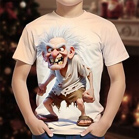 חג המולד בנים תלת מימד גראפי גברים של ג'ינג'ר חולצה קצרה טישירט שרוולים קצרים קיץ אביב אופנתי בסיסי ילדים 4-12 שנים צווארון עגול קצר בָּחוּץ קזו'אל יומי רגיל