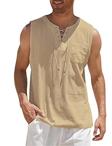 בגדי ריקוד גברים חולצת כותנה לבנה חולצת קיץ חולצה קז'ואל חולצת חוף חולצת פשתן מכותנה אחיד בָּחוּץ חופשה שחור לבן יין חום ללא שרוולים צווארון V קיץ ביגוד שרוכים לכל האורך