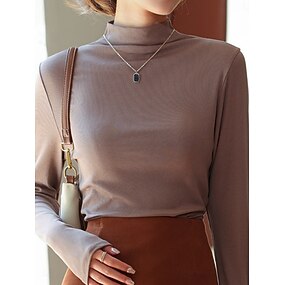 בגדי ריקוד נשים חולצה צבע אחיד מסוגנן יום יומי שרוול ארוך צווארון גבוה חולצות רגילות יומי שחור לבן פול חום חאקי סתיו חורף