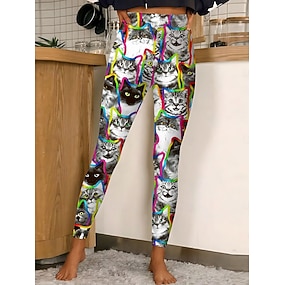 בגדי ריקוד נשים חותלות טייץ נעים חופשה יום יומי באורך מלא מותניים גבוהים גראפי חתול מדפיס נוח סטרצ'י (נמתח) קזו'אל יומי חופשה לבן אביב סתיו גזרה צרה
