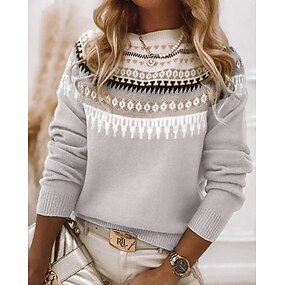 בגדי ריקוד נשים סוודר חג המולד סוודר Fair Isle סוודר סוודר האי הוגן סגנון רחוב יום יומי גראפי גיאומטרי צווארון עגול קצר סרוג דפוס שרוול ארוך חולצות רגילות לִסְרוֹג יומי חגים ליציאה ורוד מסמיק פול